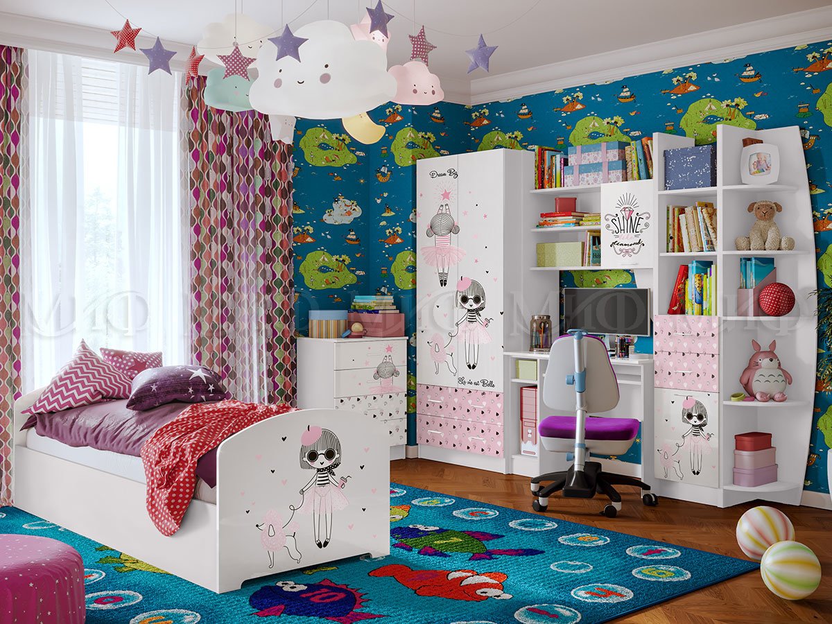 Живое и интересное оформление детской комнаты настраивает на позитив и хорошее настроение С детской мебелью "Мальвина" ребенок побывает в волшебном мире любимых героев. Пастельные цвета фасадов воспринимаются комфортно и нежно.