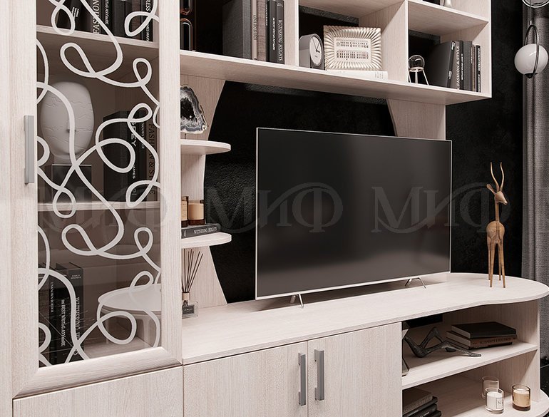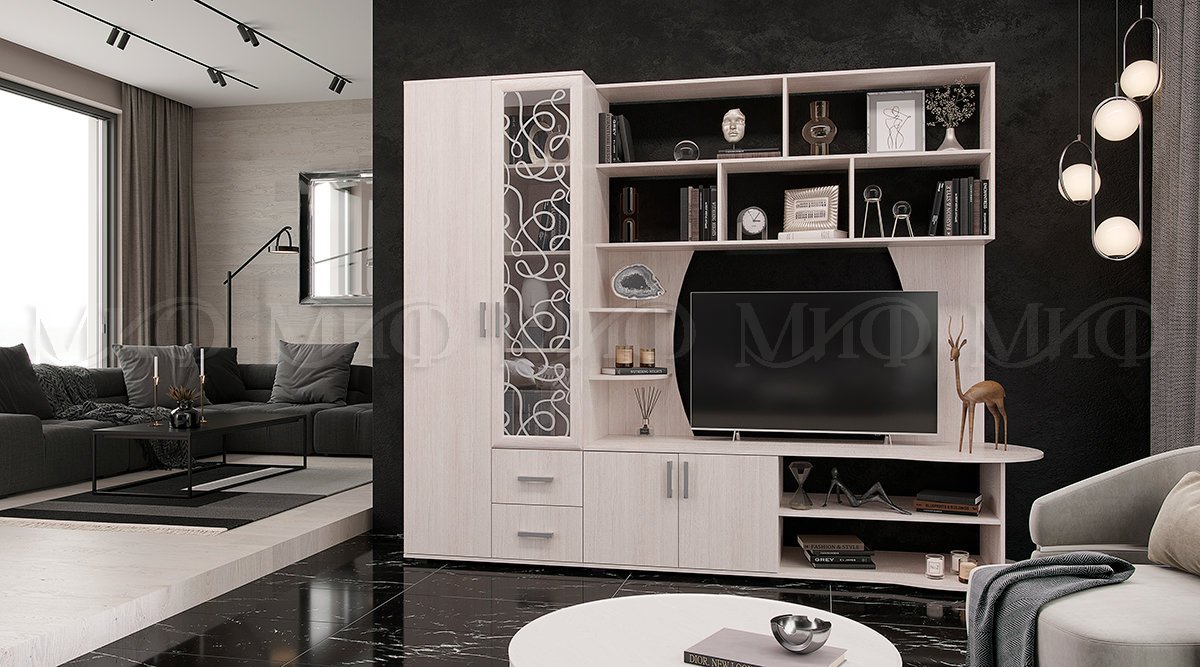 Элегантная монохромная модель с застекленной витриной. Сочетает в себе элементы функциональности, эргономичности и комфорта. Комбинированная стенка "Смарт" создана для идеального интерьера квартиры или загородного дома.