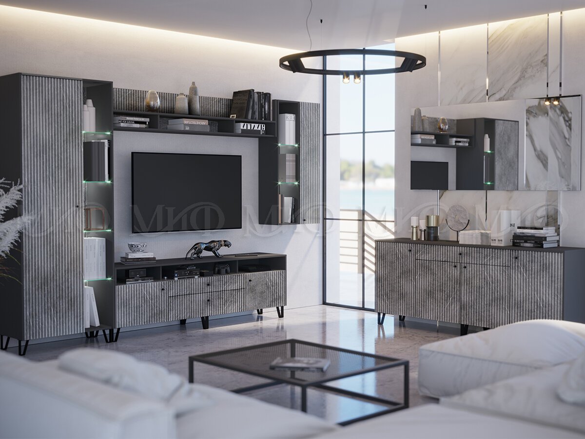 Схема сборки Оливия Тумба ТВ малаяШкаф навесной большой Оливия - внутреннее наполнение