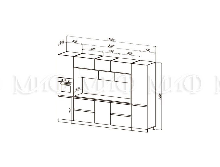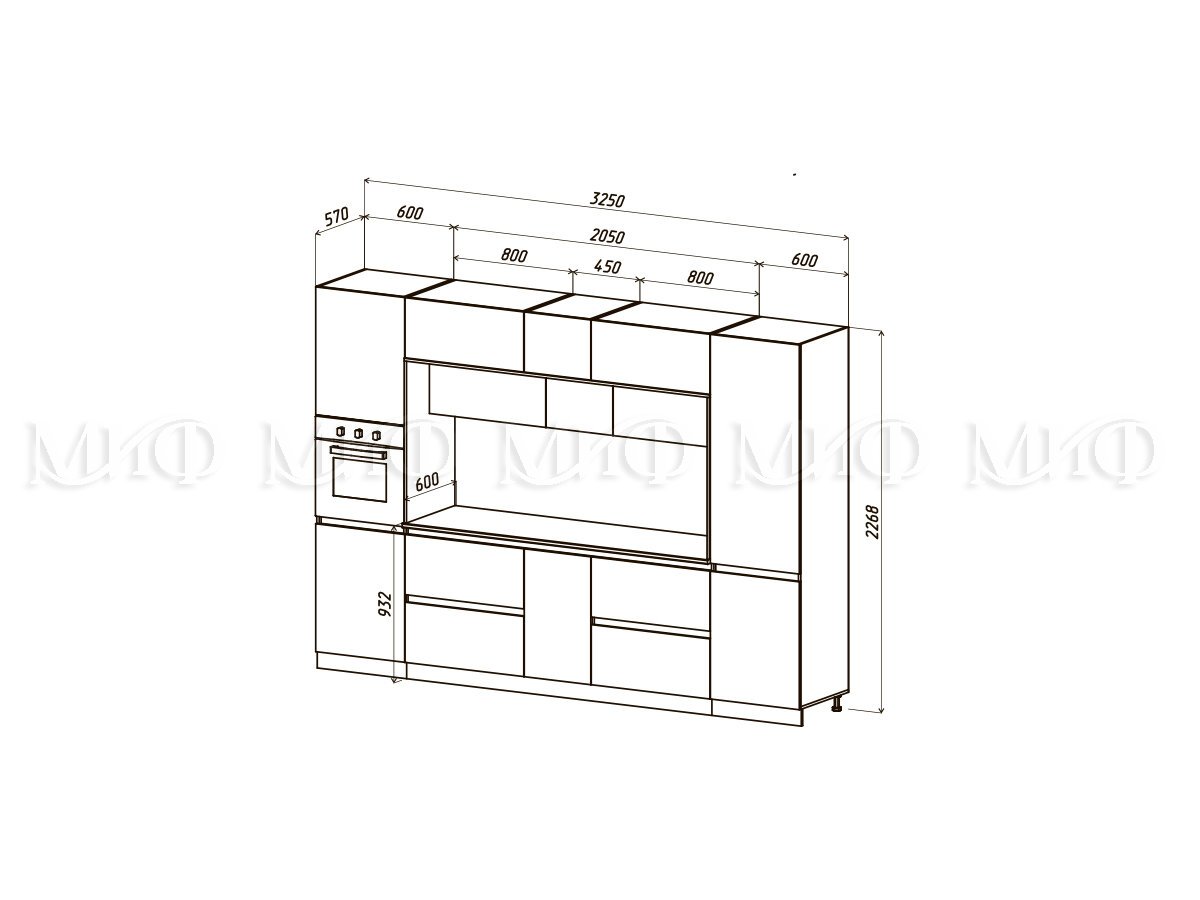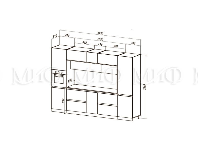 Схема Кухня Карина Центральная секция 2050ЛДСП Кухня Карина Центральная секция 2200