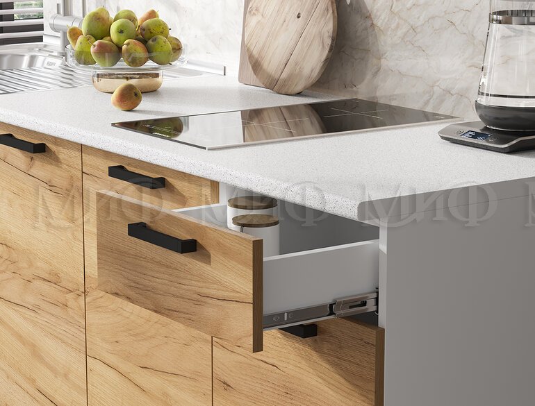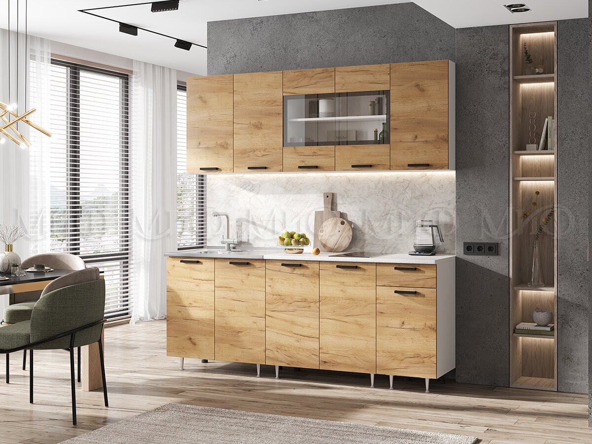 Кухня "Рио New" ЛДСП дуб крафт светлый (Юкон) очаровывает своими фасадами со светлыми оттенками под дерево. Такая кухня прекрасно гармонирует с любым стилем и дизайнерским решением.