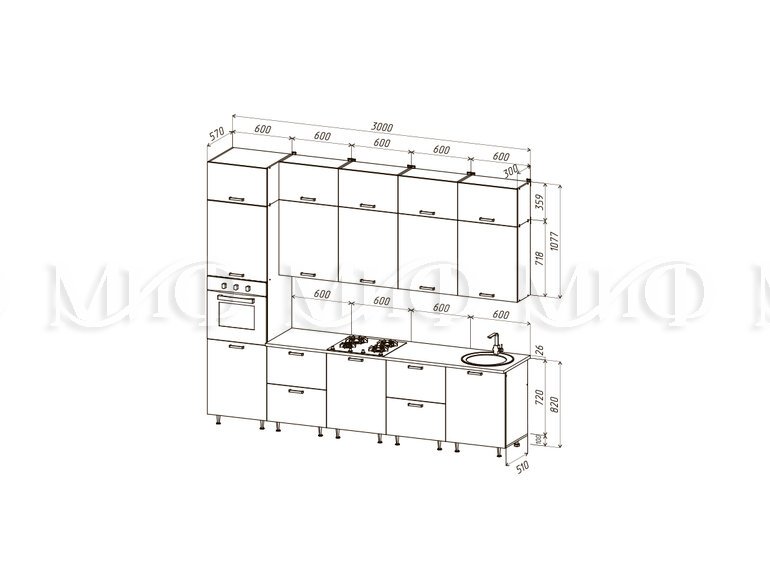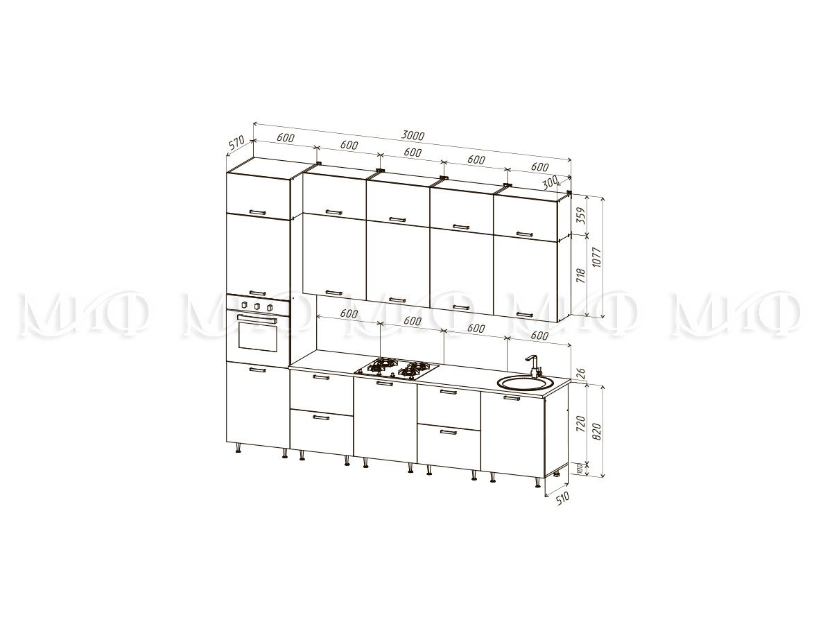 ЛДСП Кухня Рио NEW 3,0/1080м(490) Компоновка №3