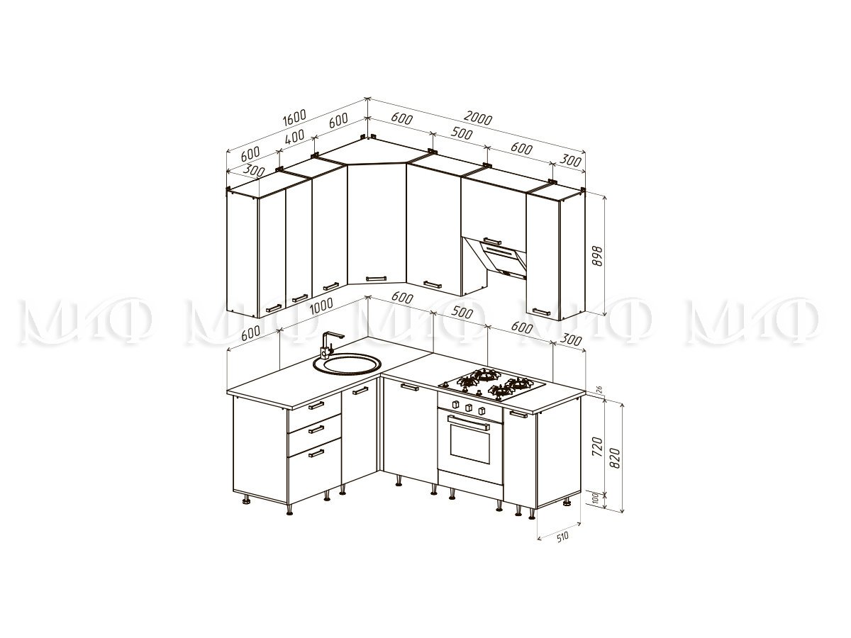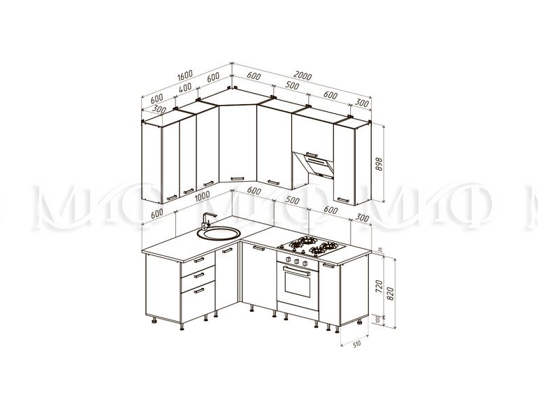 ЛДСП Кухня Рио NEW 1,6х2,0/900м(490) Компоновка №2