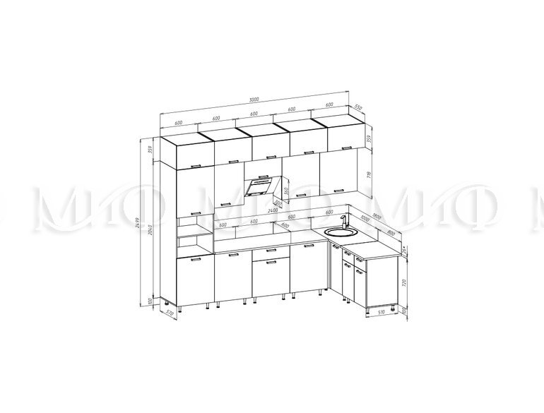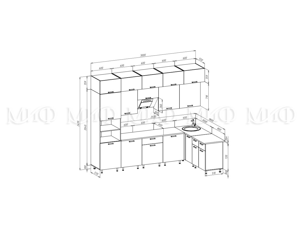 ЛДСП Кухня Рио NEW 3,0х1,8м/1080(490) Компоновка №5