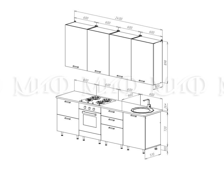 ЛДСП Кухня Рио NEW 2,4/900м(490) Компоновка №2