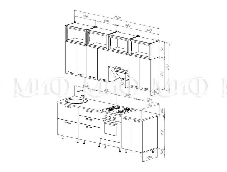 ЛДСП Кухня Рио NEW 2,4/1080м(490) Компоновка №4