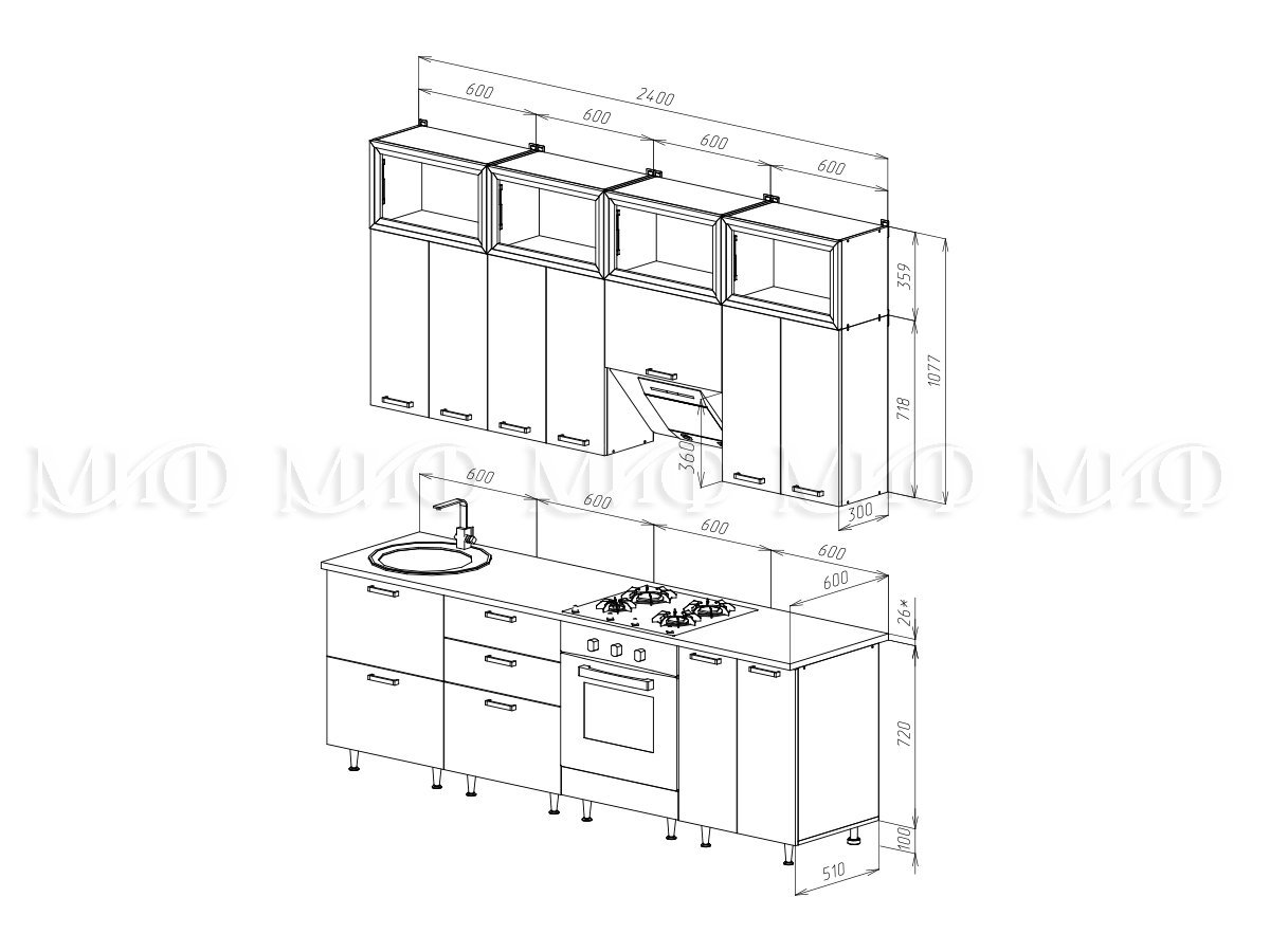 Кухонный гарнитур "Рио" NEW 2.4м (комп.4) (490) !