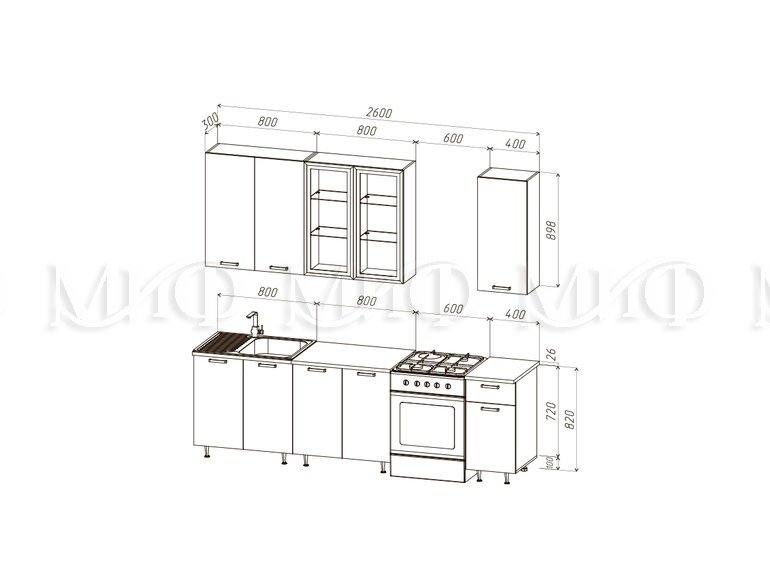 ЛДСП Кухня Рио NEW 2,0/900м(490) Компоновка №1