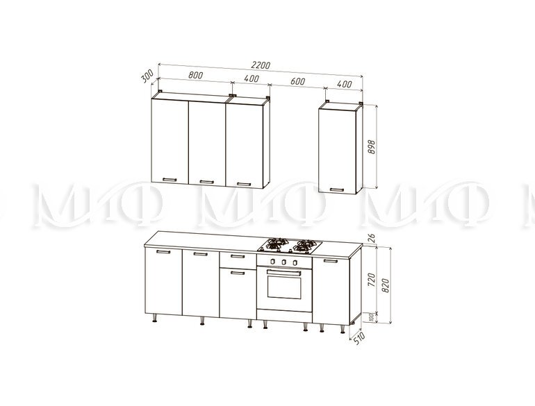 ЛДСП Кухня Рио NEW 2,2/900м(490) Компоновка №2