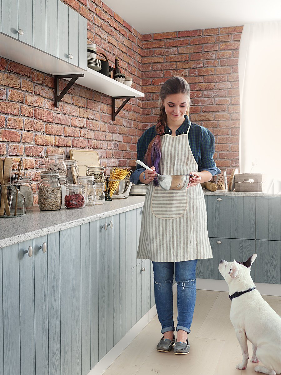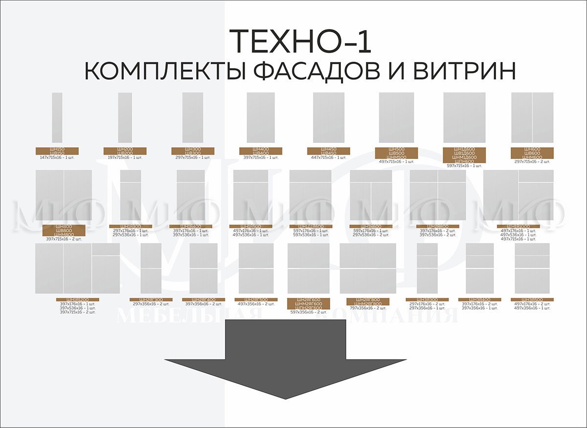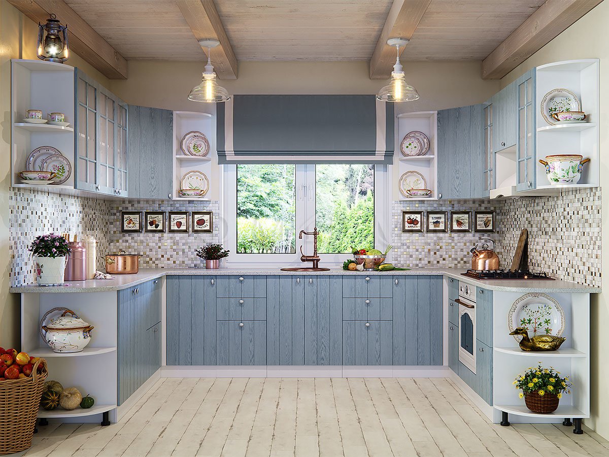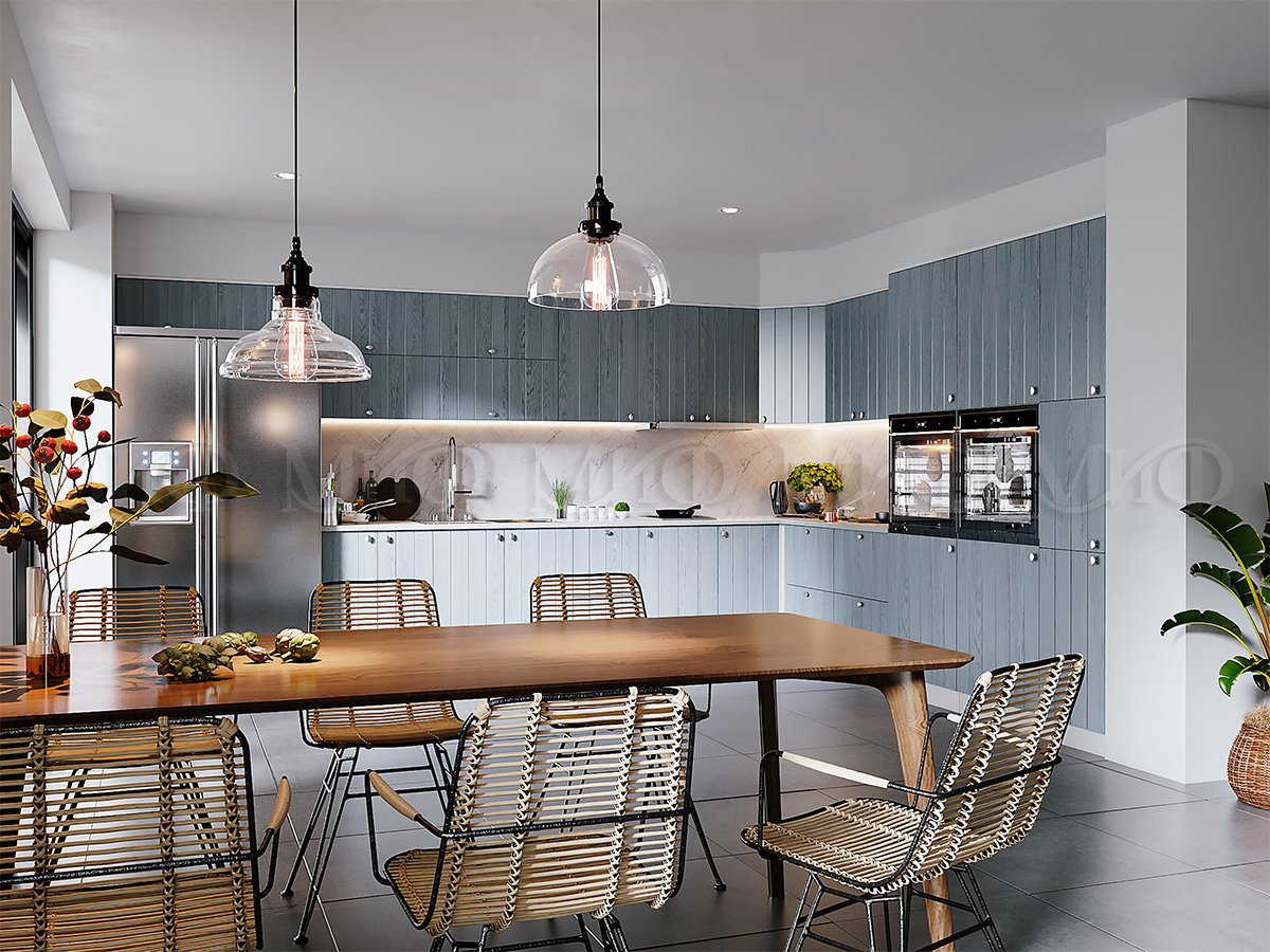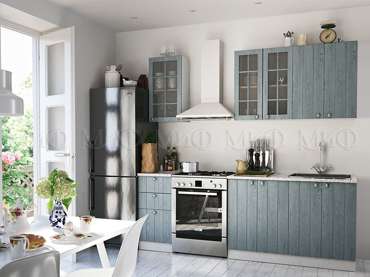 Серо голубые фасады "Техно-1" не раздражают и не надоедают, а функциональность шкафов позволяет максимально использовать пространство. Эта элегантная кухня прекрасно подойдёт для оформления небольших помещений, так как зрительно расширяет пространство.
