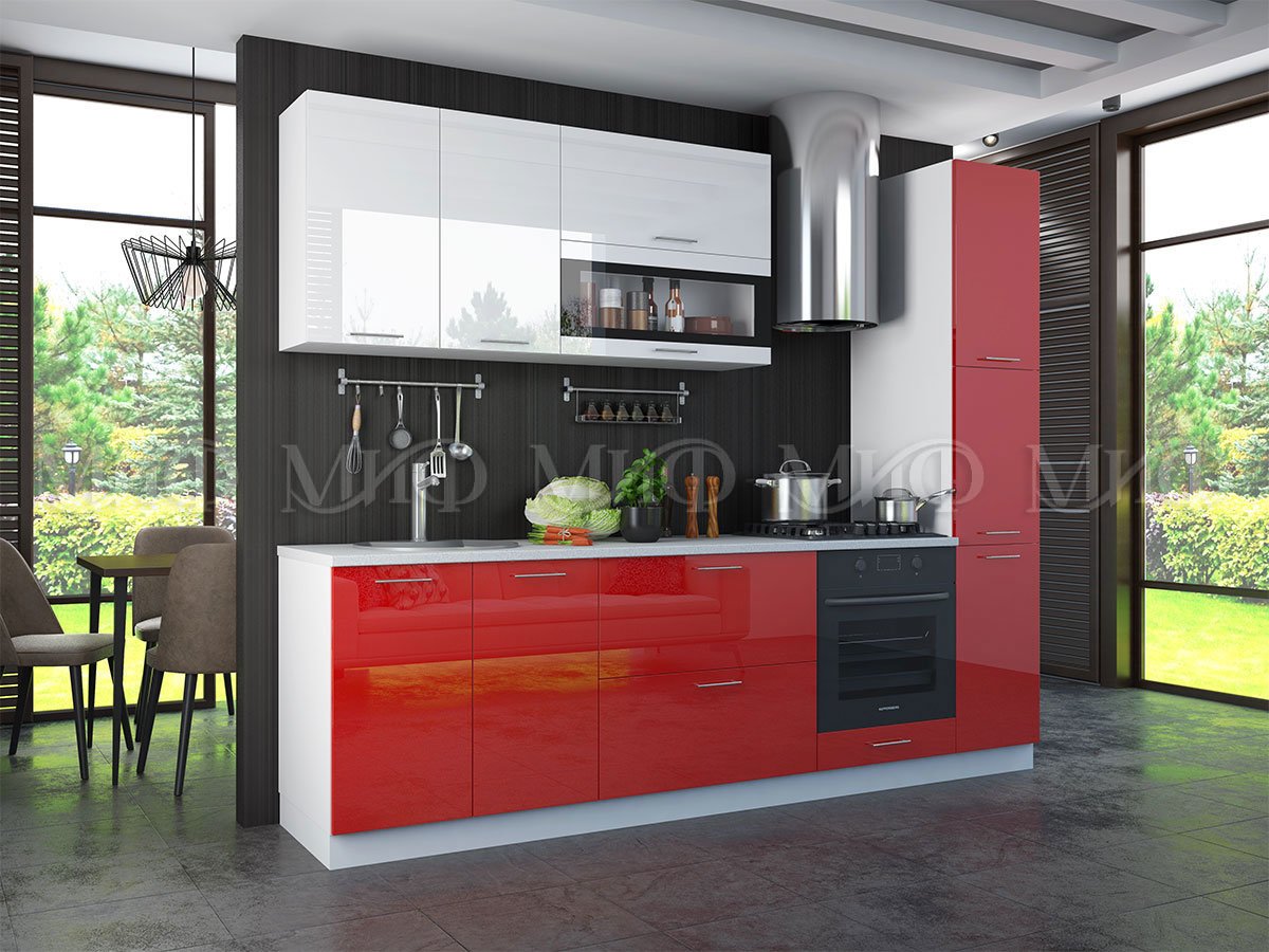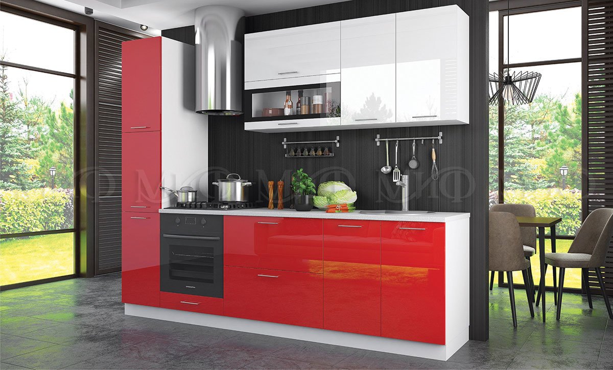 Кухня белый и красный глянец «Техно» — универсальная кухня, подходящая под любой стиль и интерьер. Глянцевые фасады отражают свет, тем самым зрительно расширяют пространство, а белый цвет делает кухню светлее и ярче. Вы получите светлую и просторную кухню, несмотря на габариты помещения.