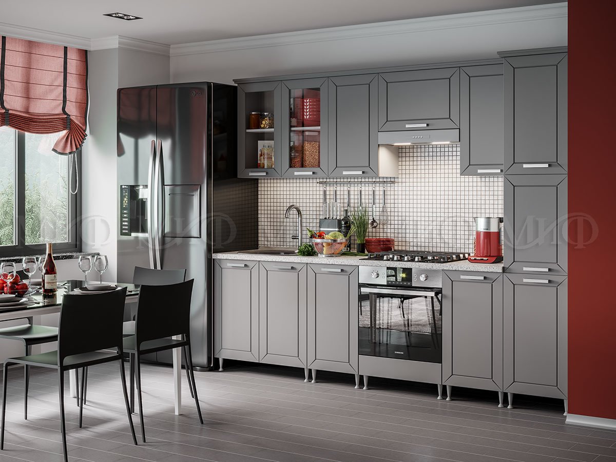 Изящная кухня «Монако» поражает своим величием, надежностью и основательностью. Строгие лаконичные формы и приглушенная цветовая палитра фасадов, настоящая находка для людей, любящих минимализм и простоту интерьера.