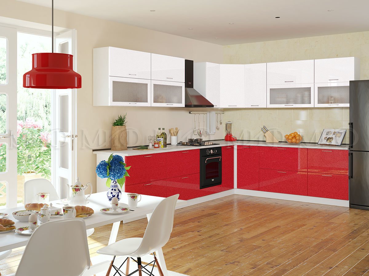 Кухня белый и красный глянец «Техно» — универсальная кухня, подходящая под любой стиль и интерьер. Глянцевые фасады отражают свет, тем самым зрительно расширяют пространство, а белый цвет делает кухню светлее и ярче. Вы получите светлую и просторную кухню, несмотря на габариты помещения.