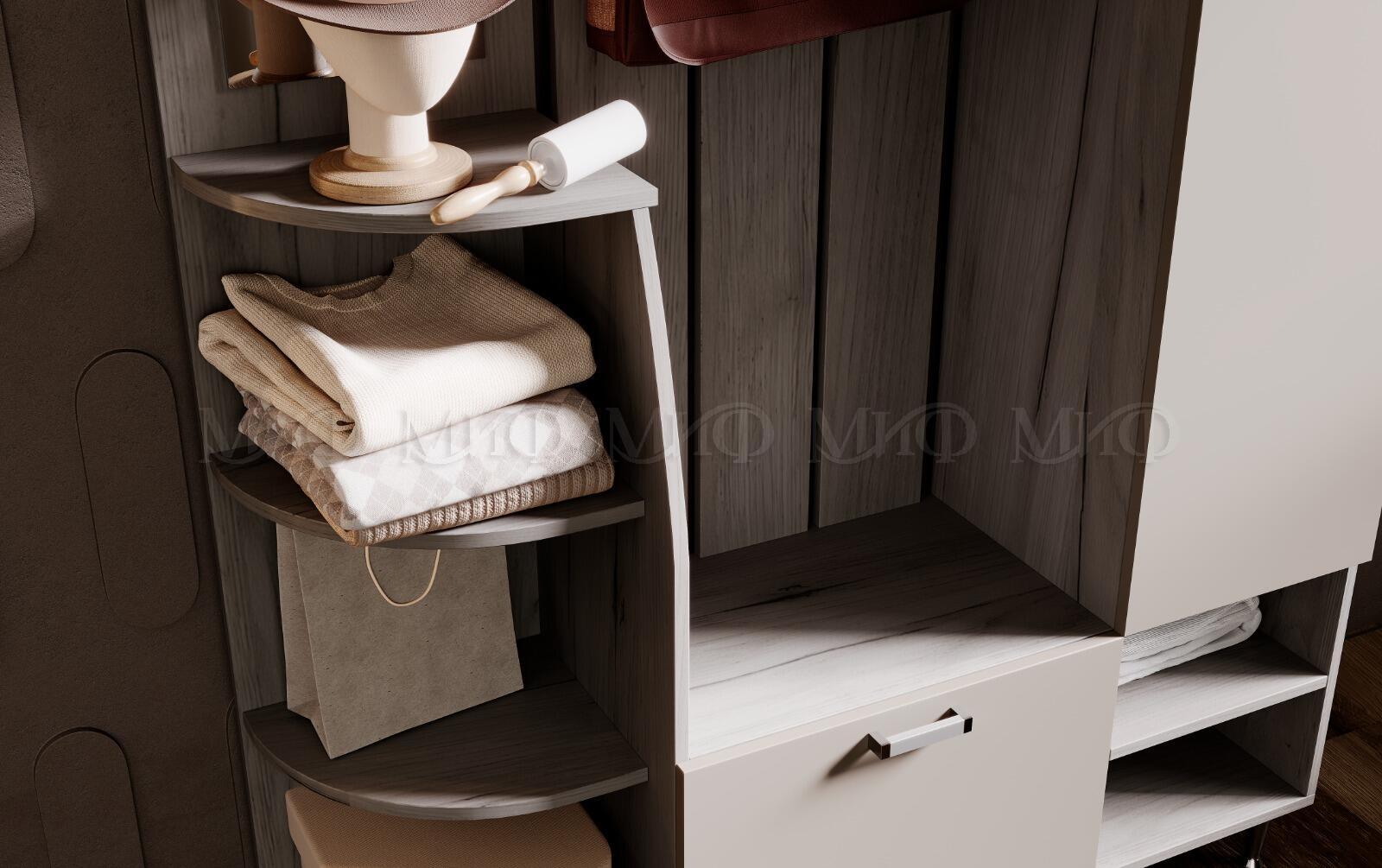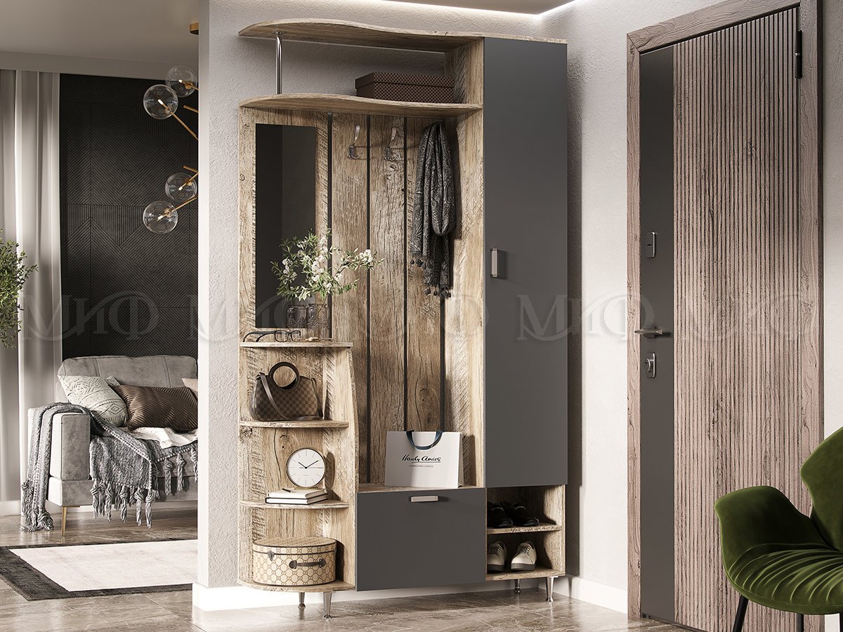 Отличается малыми габаритами, но достаточной шириной для того, чтобы вместить в себя минимум необходимых секций. Поможет правильно организовать пространство прихожей и эффектно оформить малую по площади входную зону.