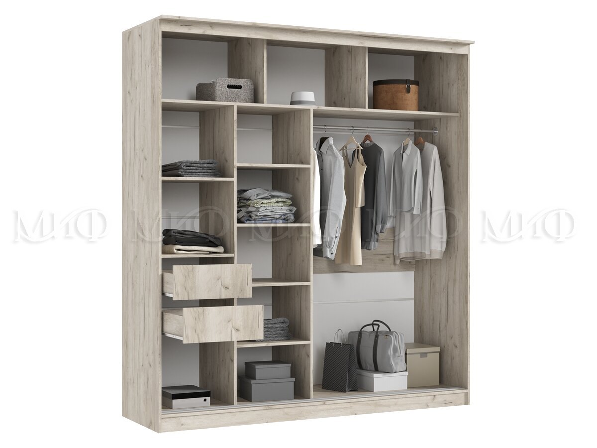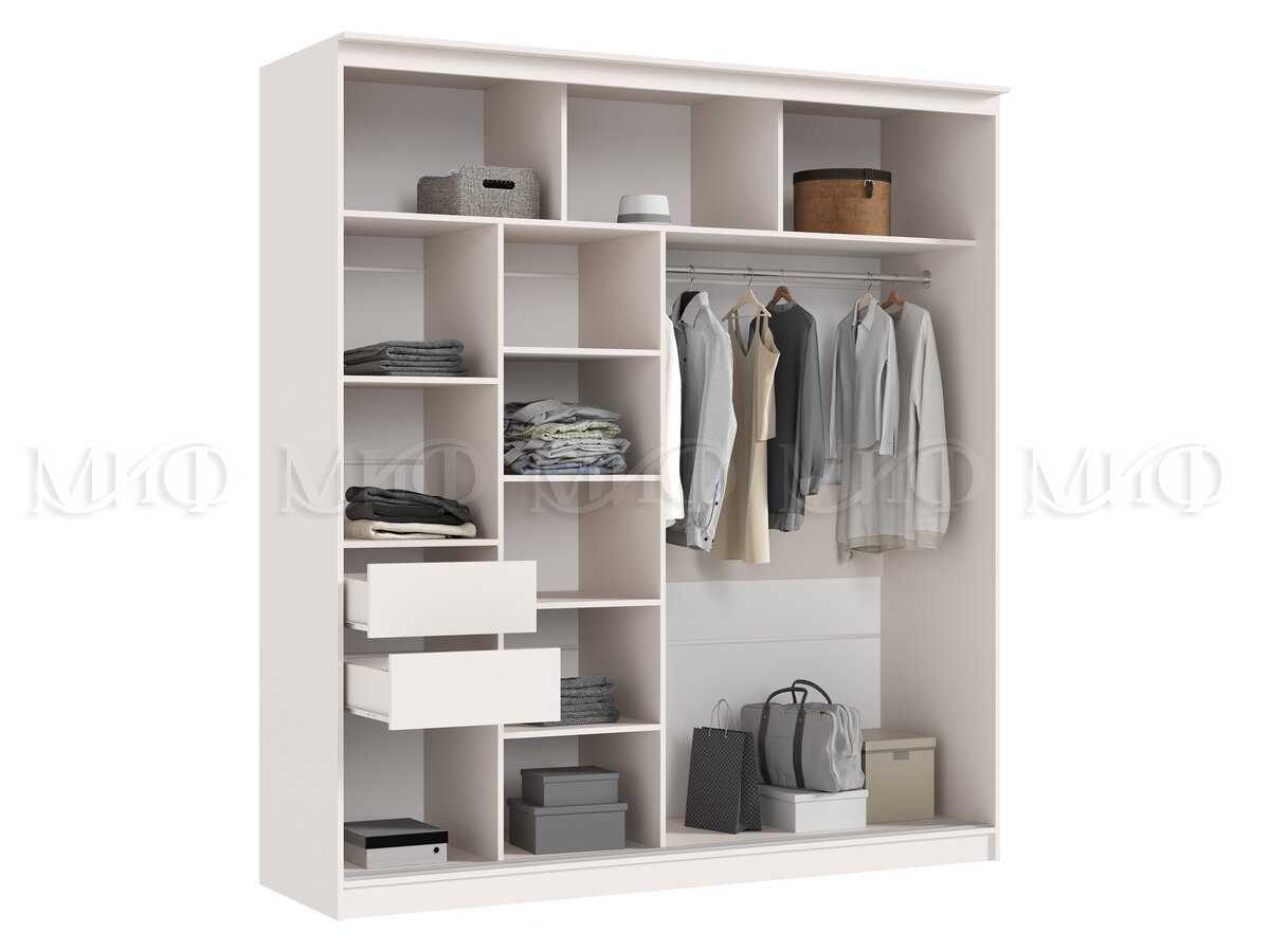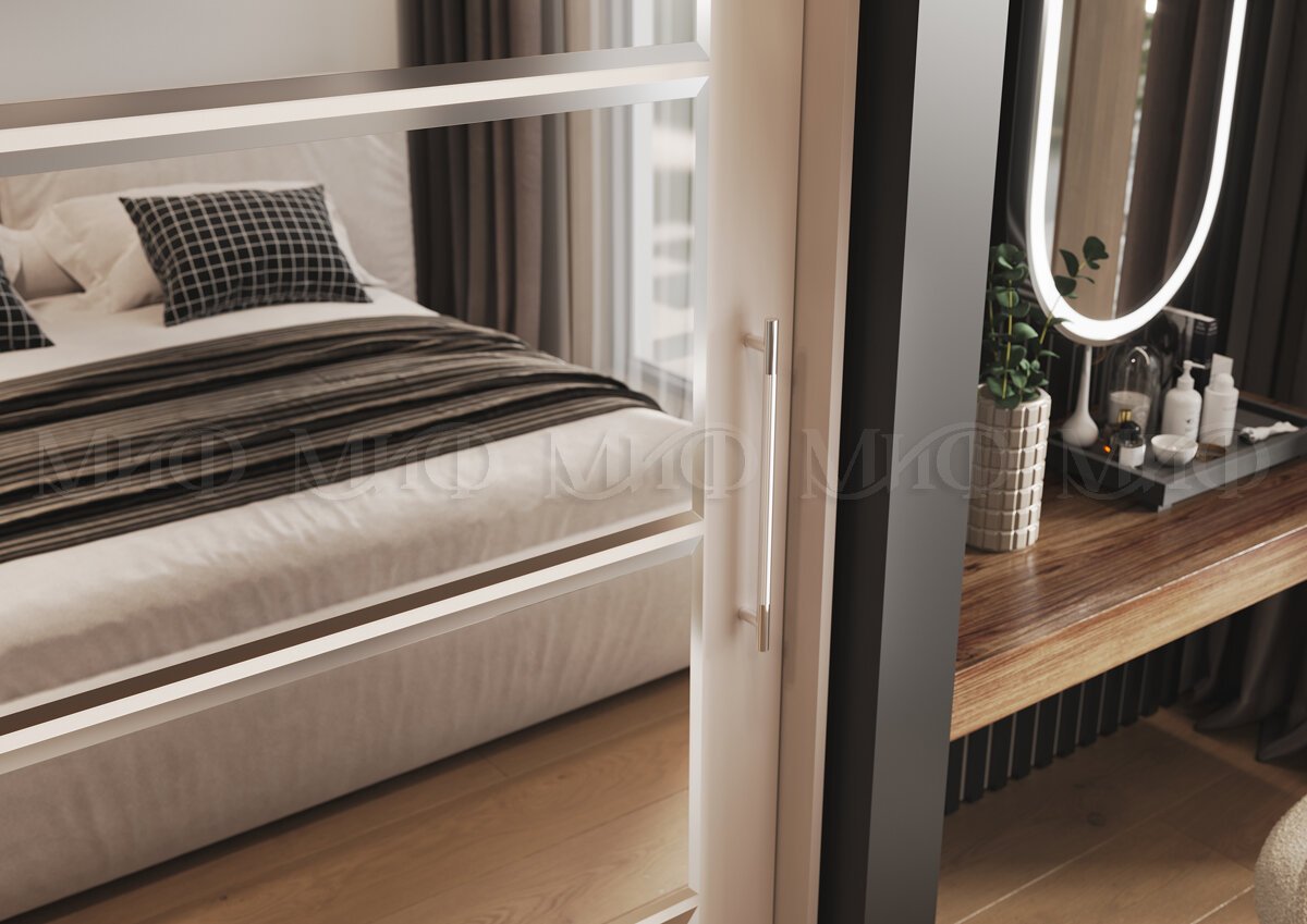 Элегант - шкаф купе с двумя дверями. Оригинальный дизайн фасада делает его весьма привлекательным. Зеркала, занимая практически всю площадь раздвижных дверей, скрадывают габариты шкафа, зрительно расширяют помещение.