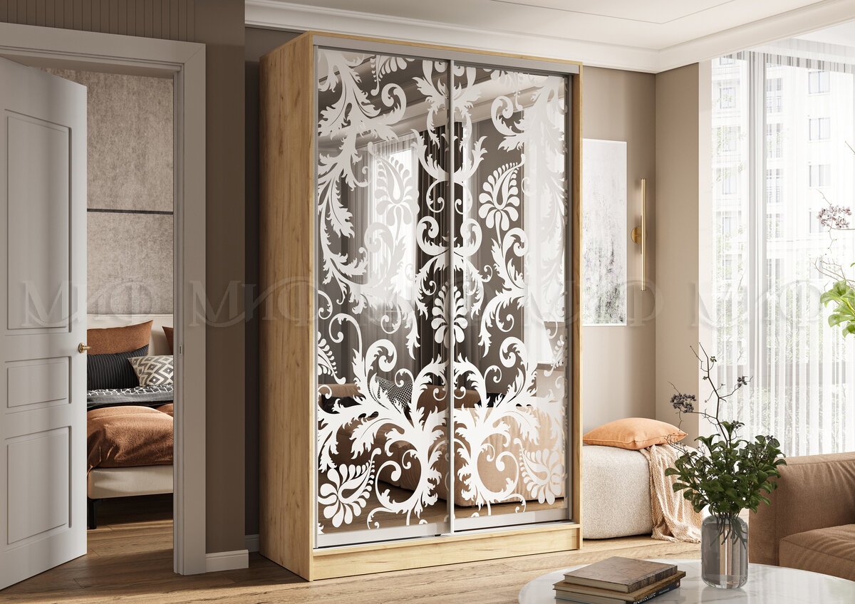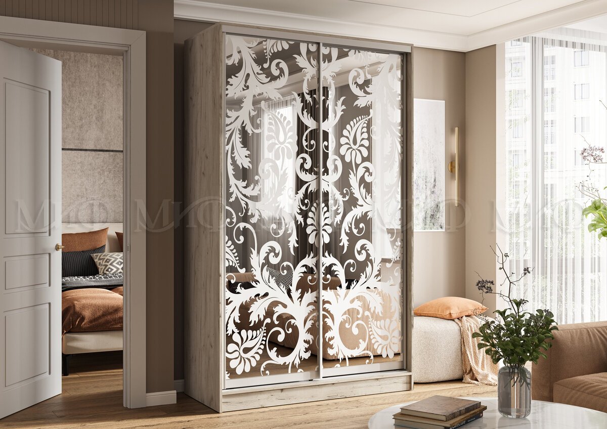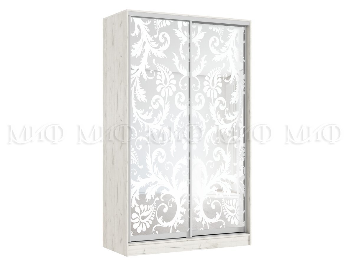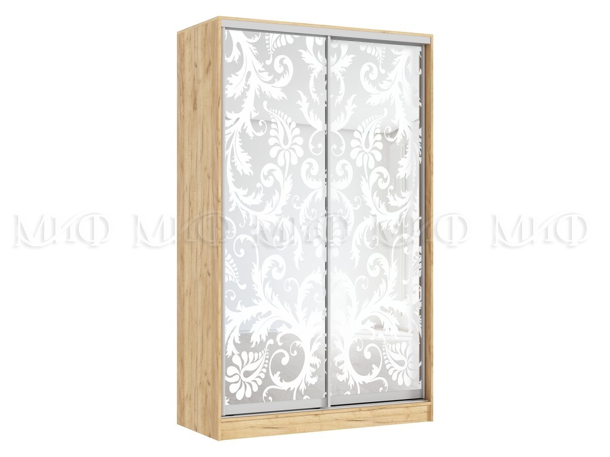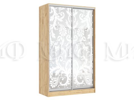 Прекрасная модель шкафа - купе "Шкаф-купе Тринити 3 (1,35 м)" с полками, штангой и насыщенным рисунком на зеркале украсит вашу квартиру и дополнит интерьер особым шармом.