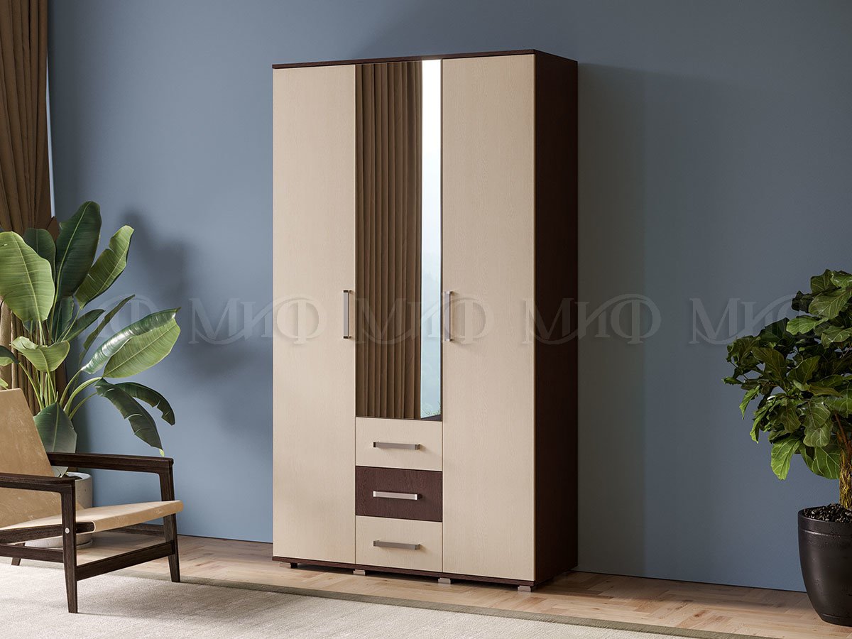 Классический трехстворчатый функциональный шкаф, впишется в любой интерьер и не займет много места, имеет выдвижные ящики для хранения белья.