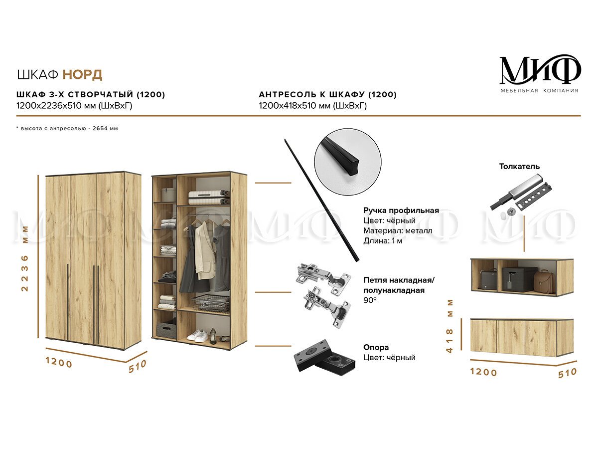 Шкаф 3-х ств. Норд, внутреннее наполнение