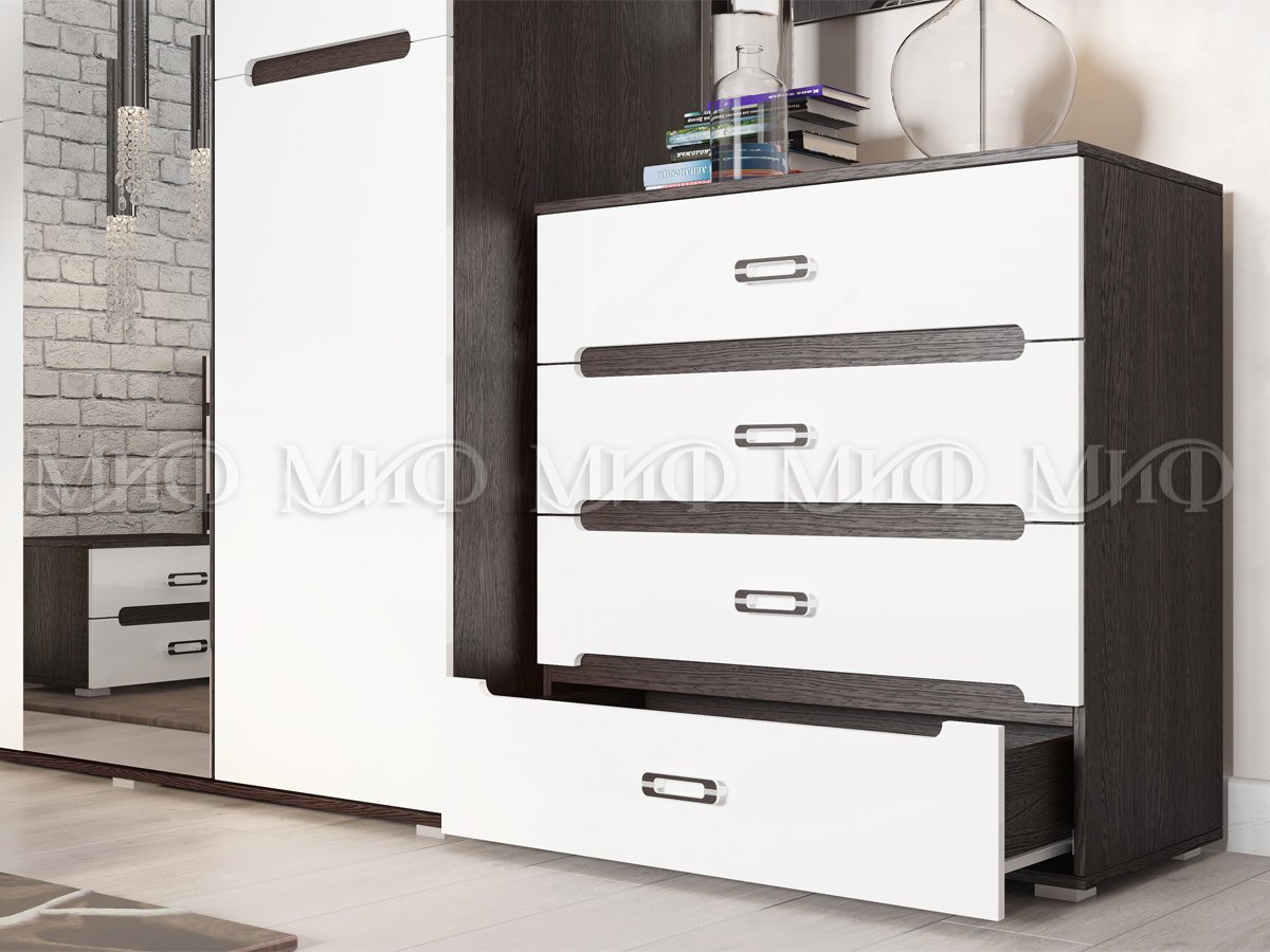 Модульная программа для спальни в бело-черных тонах - идеальное дизайнерское решение для любой квартиры. Мебель, выполненная в одном стиле и цветовой гамме с интерьером, позволит вам сделать комнату особенной и неповторимой. Из представленных модулей легко можно собрать спальный гарнитур под размер вашей комнаты.