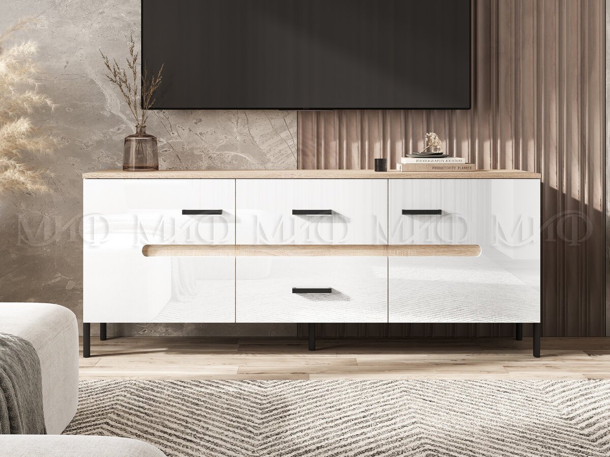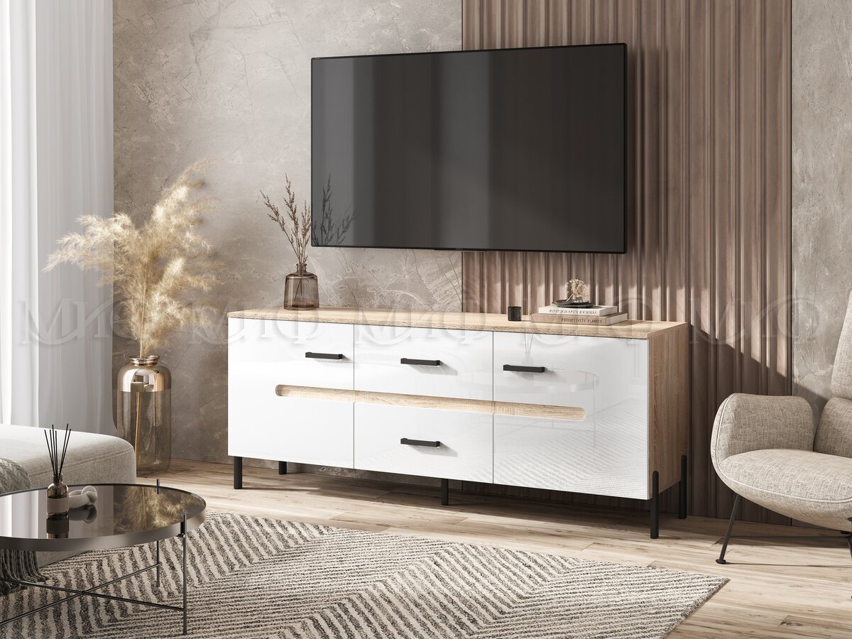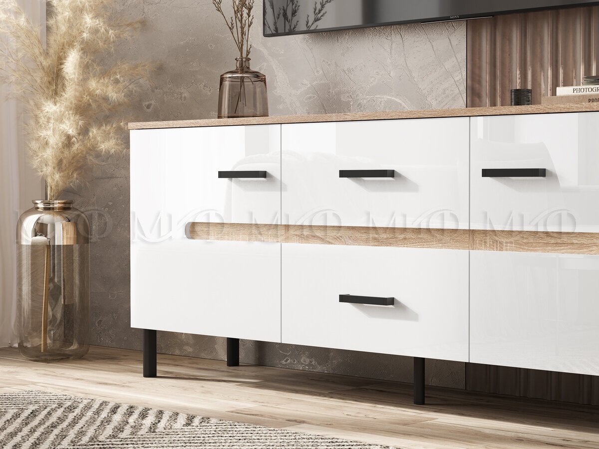 Красивая тумба с белыми ,глянцевыми фасадами разместит не только телевизор, но и станет дополнительным местом для хранения милых сердцу вещей.