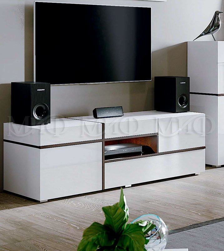 Красивая тумба с белыми ,глянцевыми фасадами разместит не только телевизор, но и станет дополнительным местом для хранения милых сердцу вещей.